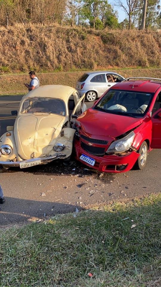 Um Jovem estava dirigindo um fusca Bege em zigue zague pela rodovia e bateu de frente com uma pickup Montana que vinha no sentido contrário. O acidente foi na tarde de sábado (7)