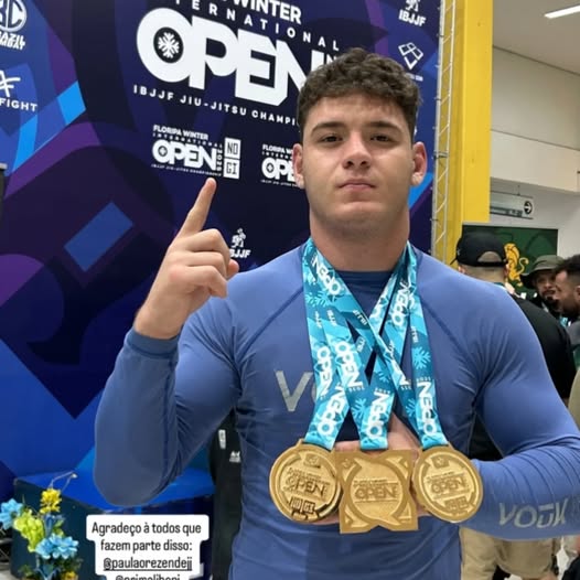 O jovem talento do Jiu-Jitsu, Viana Grappler (@viana_grappler), natural de São José do Rio Pardo, voltou a Florianópolis com mais uma impressionante performance nos tatames. Após dois meses de sua última participação, quando conquistou duas medalhas de ouro e duas de bronze, o atleta agora superou suas próprias marcas ao faturar três medalhas de ouro em uma competição internacional de alto nível.