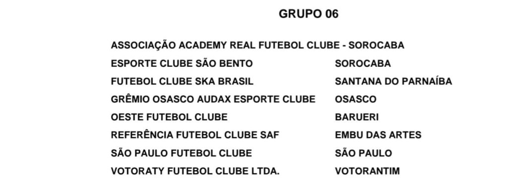 Confiram o Grupo Sub 13 do Campeonato Paulista da modalidade