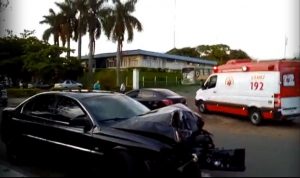 Um acidente de trânsito com vítima aconteceu na noite de ontem por volta das 19h30, no cruzamento da Avenida Dona Olinda Ralston com a Henry Nestlé. Em depoimento uma mulher de 35 anos, FVC disse que vinha com seu Fiat Uno Vivace Cinza ano 2010 pela Henry Nestlé sentido centro-bairro, quando um Omega preto ano 2005, conduzido por um homem DLB de 37 anos, não respeitou a placa de parada obrigatória, vindo a atingir o seu carro e em seguido colidiu contra um poste de iluminação pública vindo a danificá-lo. Segundo a mulher o homem tentou esconder-se em um mato, mas foi localizado pelo marido dela. Os policias tentaram ouvir DLB, mas, o mesmo estava sendo atendido pela equipe do Samu e apresentava sinais visíveis de embriaguez. O homem recusou-se a fazer o teste do etilômetro bem como doar amostra de sangue, mas mesmo assim foi preso em flagrante por embriaguez ao volante. No interior do carro dele os policiais encontram duas latas de cervejas intactas, porém geladas. Ele foi conduzido à Delegacia de Polícia onde a prisão foi ratificada e estipulada fiança no valor de R$ 1.000,00 que foi paga e DLB liberado, porém, sua carteira de habilitação ficou retida.