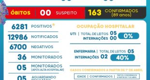 Mais 50 casos e um óbito em 5 dias Depois de cinco dias, a Vigilância Epidemiológica divulgou o seu boletim, com os dados represados desde a sexta (8). O informe registra nesta quarta (13) mais 50 novos casos da Covid-19 e um óbito, de uma pessoa de 89 anos . …