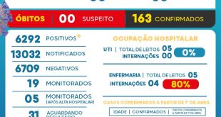 A semana, encerrada na sexta (15), fechou com 67 casos positivos e mais 2 óbitos. Os casos ativos, ou sejam, de pessoas ainda em tratamento, somam 53. Com os 6 novos casos positivos anunciados, o total positivado subiu 6.298, destes 6.081 se curaram. Um ´óbito de um paciente de 83 …