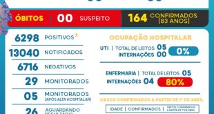 Boletim informa mais 11 casos e aumento de internados O boletim que a Vigilância Epidemiológica informou na quinta (14) trouxe o registro de 11 casos, praticamente a média dos últimos 6 dias, e um dado preocupante: o aumento de internados. Nos últimos dias a média era de dois pacientes, em …