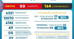 Município registra apenas 01 novo caso em 24 horas.Confiram o cronograma quinzenal de vacinação. A Vigilância Epidemiológica anunciou apenas um caso positivo na terça (19), o número mais baixo de casos do ano. Agora, o município está com 6.322 positivos, dos quais 6.134 se curaram. O município tem 164 mortes …