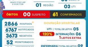 Município registra mais 75 casos e quatro óbitos O Informe da Vigilância Epidemiológica desta segunda (29), o primeiro desta semana, apontou que o município registrou mais 75 novos casos e mais quatro óbitos nas últimas 48 horas. Ainda com leitos da Enfermaria e UTI ainda lotadas, a Vigilância Epidemiológica registrou …