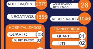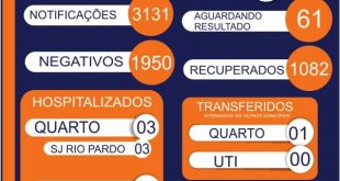 Confirmados mais 3 casos e total geral atinge 1.101 positivos Mais três casos de coronavírus foram divulgados pela Vigilância Epidemiológica (VE) na tarde de terça (17), em São José do Rio Pardo (SP). De acordo com os dados, os números de positivos chegam à 1.101 e destes, 1.053 já estão …
