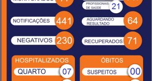 Casos positivos chegam a 106.Os recuperados somam 61. Mais dois casos de pacientes positivados para o Covid -19 foram divulgados pela Vigilância Epidemiológica na quarta (8) elevando para 106 o total de pessoas que contraíram a doença no município. Ontem eram 104 positivos. As notificações subiram para 373, os monitorados …