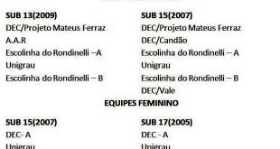 Campeonato Municipal de Escolinhas de FutSal terá inicio dia 17-9-2022 A Liga Rio-pardense de Futsal em parceria com o DEC e apoio da Prefeitura Municipal ,estará organizando o 1º Campeonato Municipal de Escolinhas de Futsal. O certame ser´á disputados nas categorias sub 13 e sub 15 no masculino e Sub …