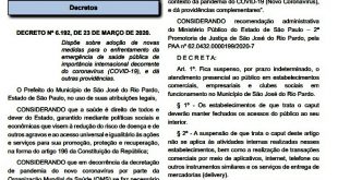 Leia o DECRETO Nº 6.192, DE 23 DE MARÇO DE 2020. Ação visa o combate ao COVID-19 Pelo Decreto assinado pelo prefeito Municipal, de acordo com o artigo 1, está suspenso, por prazo indeterminado, o atendimento presencial ao público em estabelecimentos comerciais, empresariais e clubes sociais em funcionamento no Município …