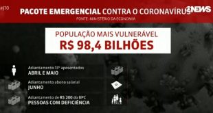 Matéria- G1 O presidente Jair Bolsonaro na tarde desta segunda-feira (23) que o governo vai implementar um plano de R$ 85,8 bilhões para fortalecer os estados e os municípios, medida que visa o enfrentamento da crise gerada pela pandemia do novo coronavírus. Bolsonaro fez o anúncio por meio de uma …