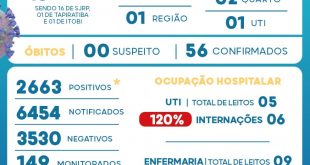 Município registra mais 18 novos casos e um óbito em 24 horas Ainda com leitos na Enfermaria e UTI lotadas, a Vigilância Epidemiológica registrou nesta quarta-feira (17), mais 18 novos casos da Covid-19 e um óbito em 24 horas. Os casos foram um pouco maior que na terça que registrou …