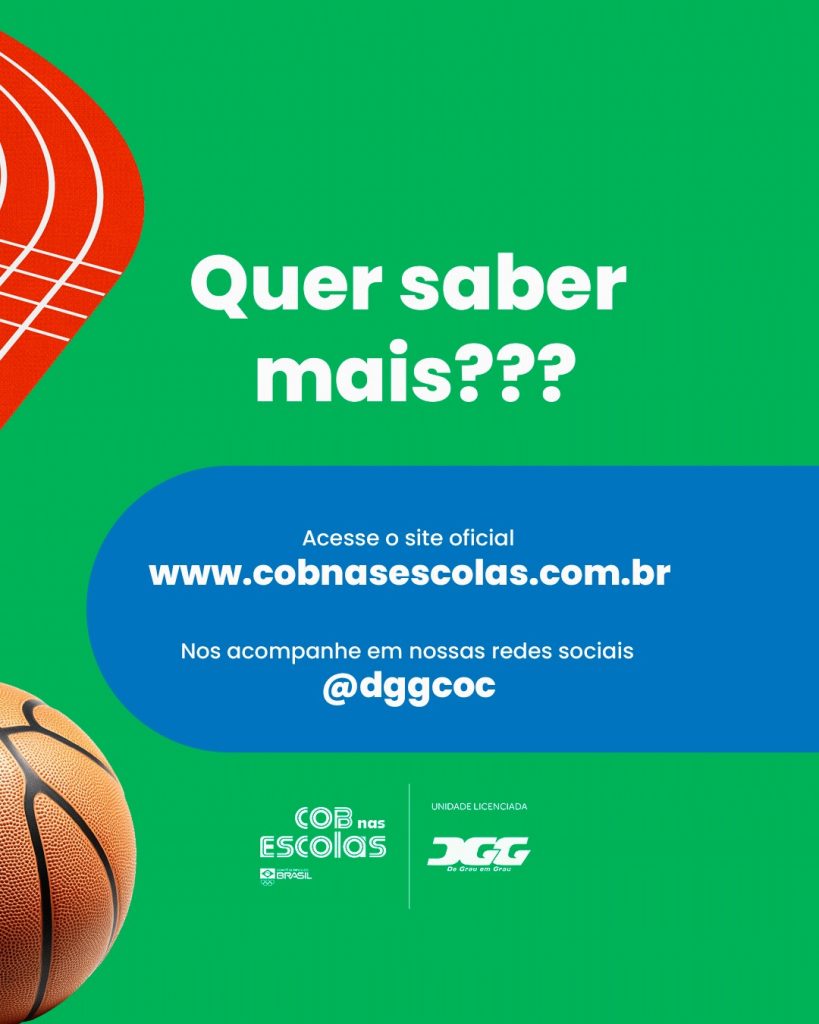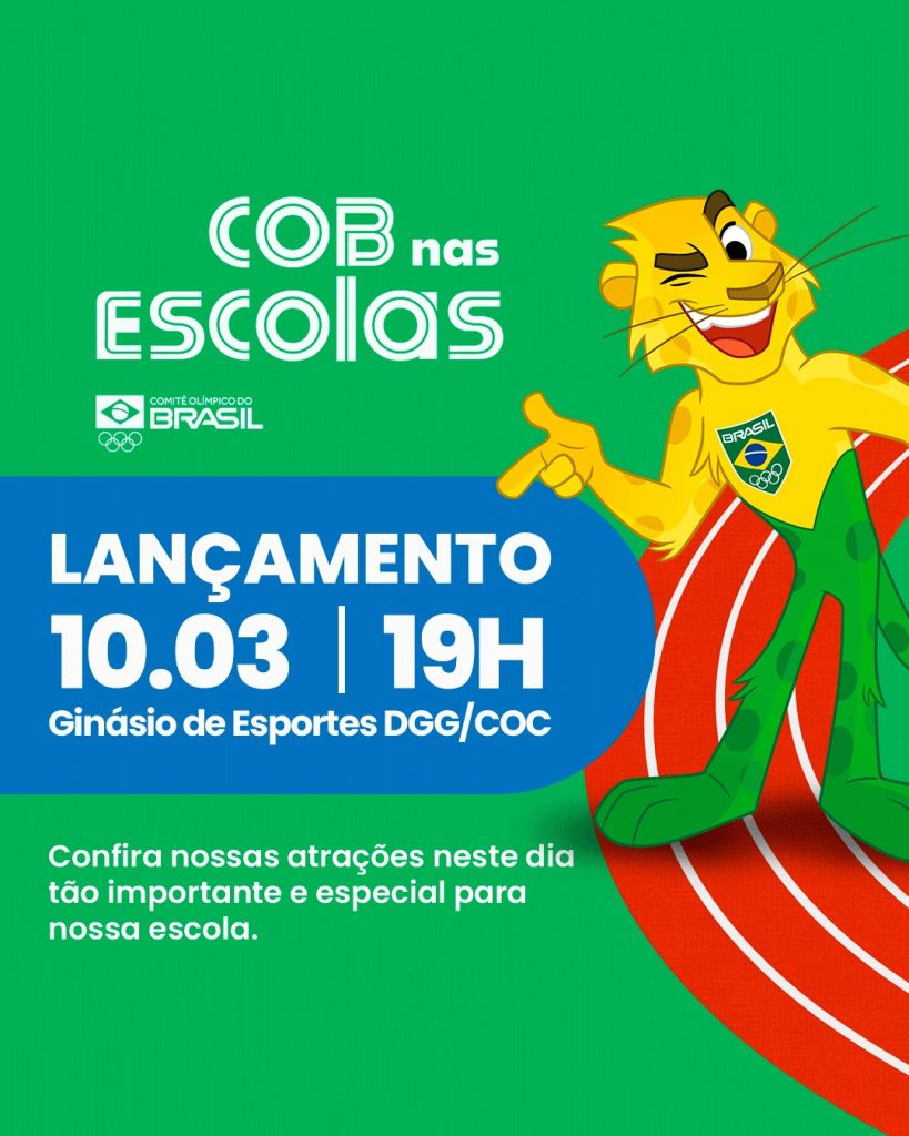 A Escola DGG/COC realiza nesta segunda-feira, dia 10 de março, o lançamento do Programa COB nas Escolas, uma iniciativa do Comitê Olímpico do Brasil que visa incentivar a prática esportiva e formar novos talentos dentro do ambiente escolar.