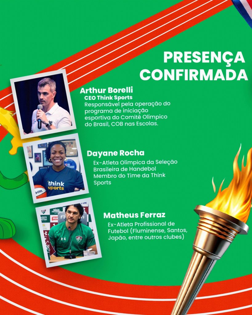 O evento acontece às 19h, no Ginásio de Esportes da instituição, e contará com a presença de grandes nomes do esporte, entre eles Arthur Borelli, CEO da Think Sports e responsável pelo programa, Dayane Rocha, ex-atleta olímpica da Seleção Brasileira de Handebol, e Matheus Ferraz, ex-jogador de futebol com passagens por Fluminense, Santos e equipes internacionais.