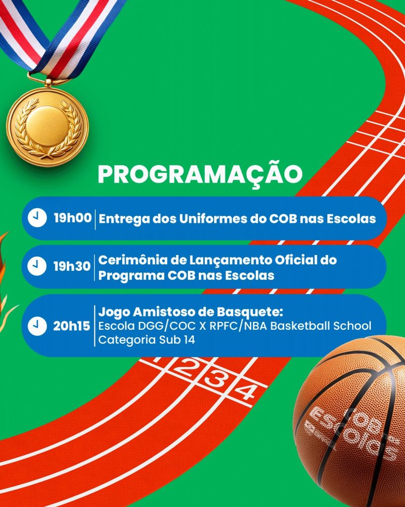 Para encerrar a noite, haverá um amistoso de basquete entre a equipe da Escola DGG/COC e o RPFC/NBA Basketball School – Sub 14, trazendo para a quadra os valores olímpicos que o programa busca promover.