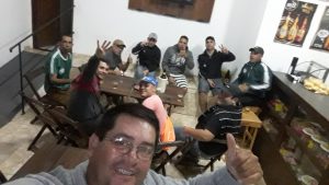 Depois da partida, claro, o pessoal comandado pelo esportista Fernando se reuniu para festejar.
