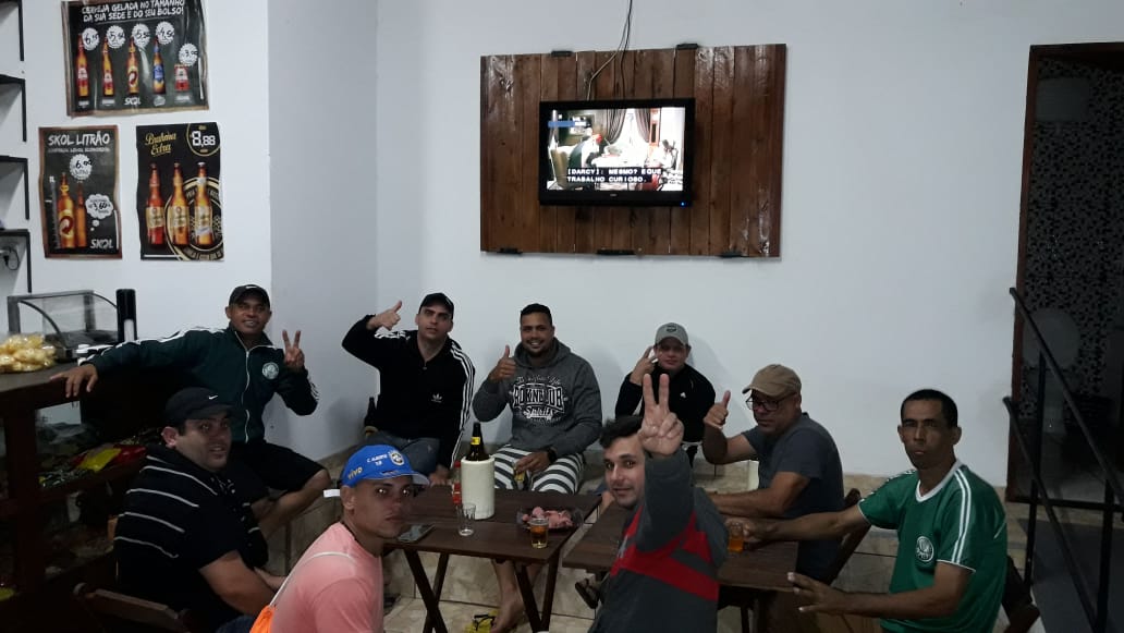 Depois da partida, claro, o pessoal comandado pelo esportista Fernando se reuniu para festejar.