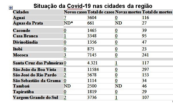 Santa Cruz das Palmeiras registrou o 117º óbito por Covid-19 desde o início da pandemia, o terceiro de agosto. Os dados do paciente não foram divulgados.