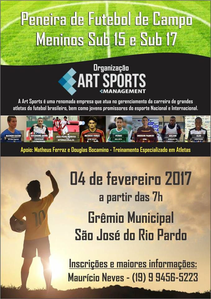 Início / Boletim Esportivo / Peneira de Futebol de Campo será no Grêmio Municipal, dia 4 de fevereiro 2017