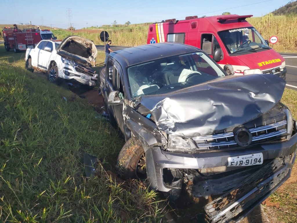 Na tarde desta quinta-feira, duas camionetas se envolveram em um acidente, na rotatória da SP-350, que dá acesso à Rodovia Lupercio Torres.