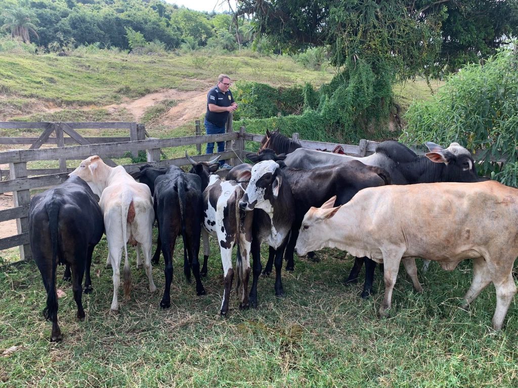 As investigações trouxeram os policiais até uma propriedade rural na região da Sinovo. No local também foram encontrados e recuperados 1 boi, 2 bezerros e 8 vacas, constatando-se que aquela era parte do plantel roubado em Minas.
