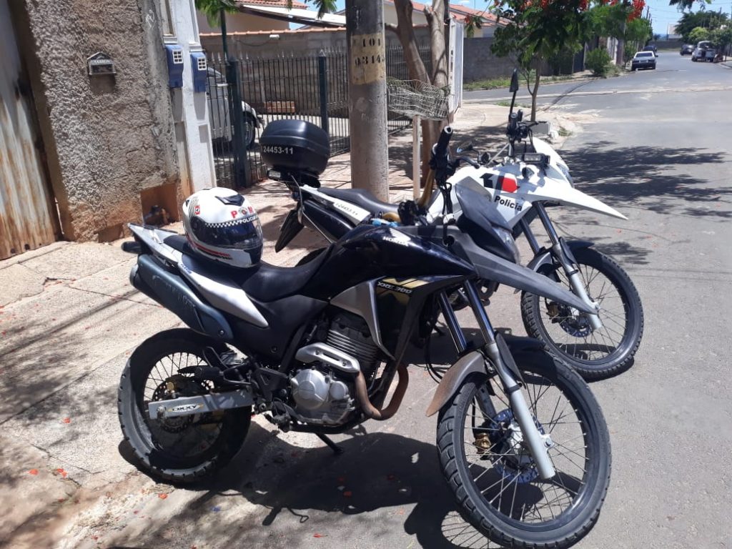 No início da tarde de ontem, dia 2, a equipe RPM (Rádio Patrulhamento com Motocicletas). Receberam informações que uma motocicleta Honda XRE 300 de cor preta, produto de furto, estaria escondida no Bairro Dionísio Guedes Barreto. De imediato os policias foram até o local onde iniciaram o patrulhamento pela Rua Fábio Luis Nicolau Pereira. Ao passarem perto de uma residência viram através de um portão que estava semiaberto que havia no interior da casa uma motocicleta encostada no muro. Foi feito contato com a proprietária do imóvel, uma mulher de 49 anos, que permitiu a entrada da equipe policial. Ao pesquisarem o chassi do veículo, ficou confirmado que a moto era produto de furto pela cidade de Mococa. A mulher disse aos policiais que seu filho de 17 amos e um amigo disseram que haviam comprado o referido veículo. Ao verificaram o quatro do filho, foram localizados escondidos no guarda roupas, um capacete e um simulacro de pistola. A mulher juntamente com objetos apreendidos, foi conduzida ao plantão policial, onde o delegado de plantão, após tomar ciência dos fatos elaborou boletim de ocorrência de ato infracional de receptação.