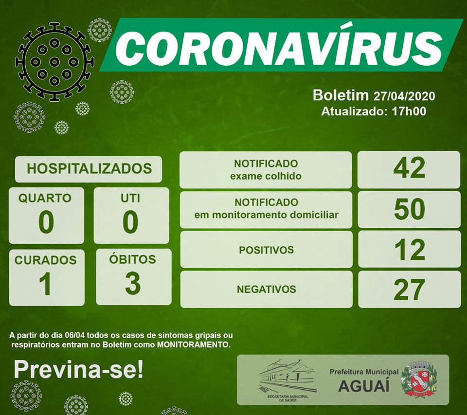 Confiram no Boletim da VE, os dados atualizados em Aguaí, em 27-4-2020