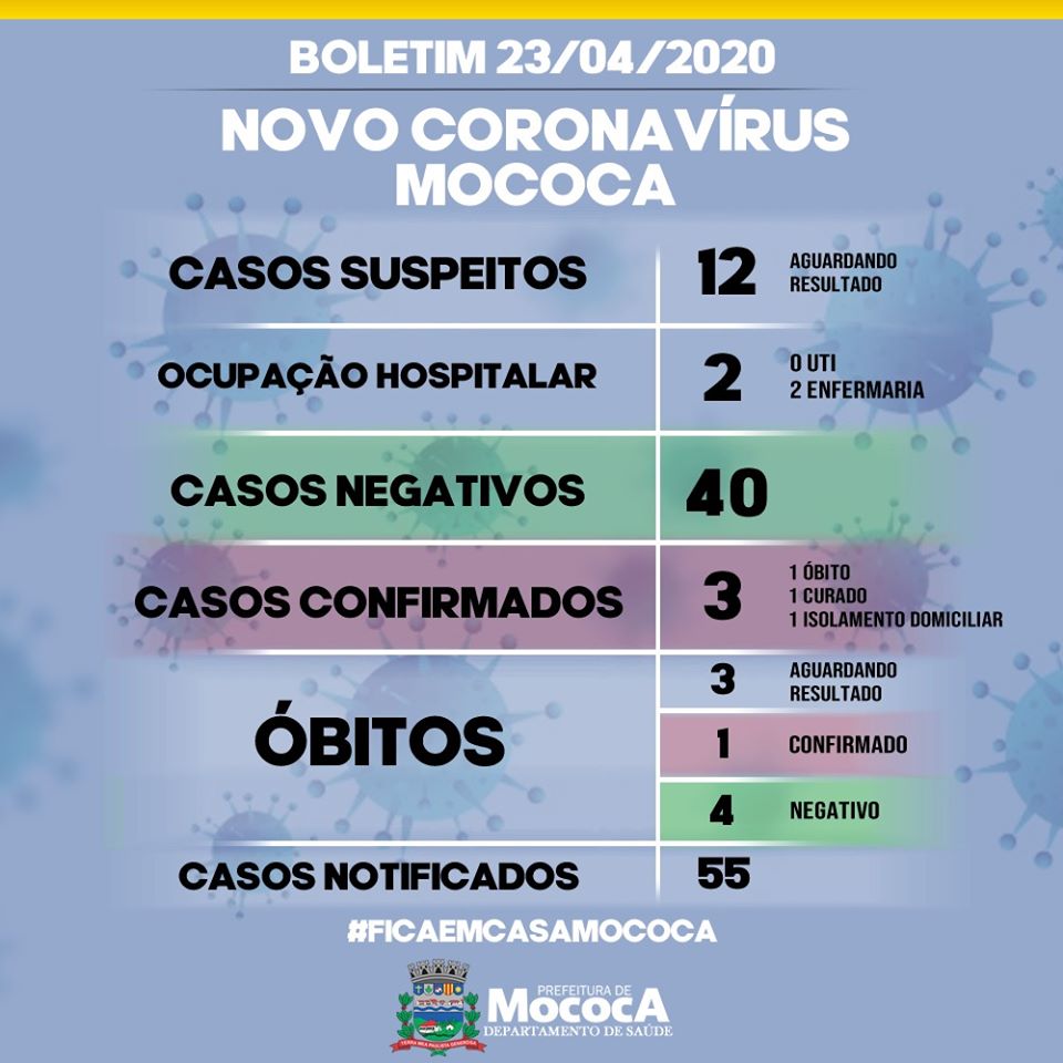 Confiram no Boletim da VE, os dados atualizados em Mococa, em 23-4-2020