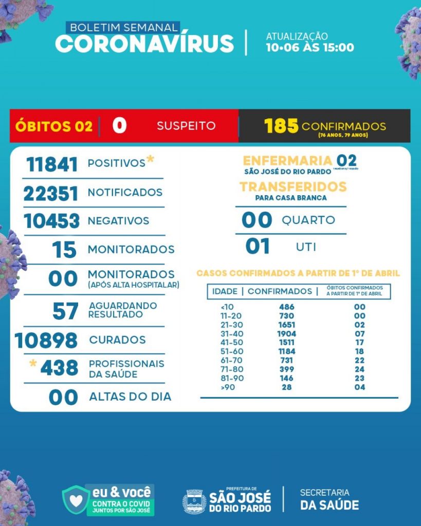 Os dados do paciente que faleceu nesta semana não foram divulgados. As informações constam do boletim informativo datado de 10-6-2022.