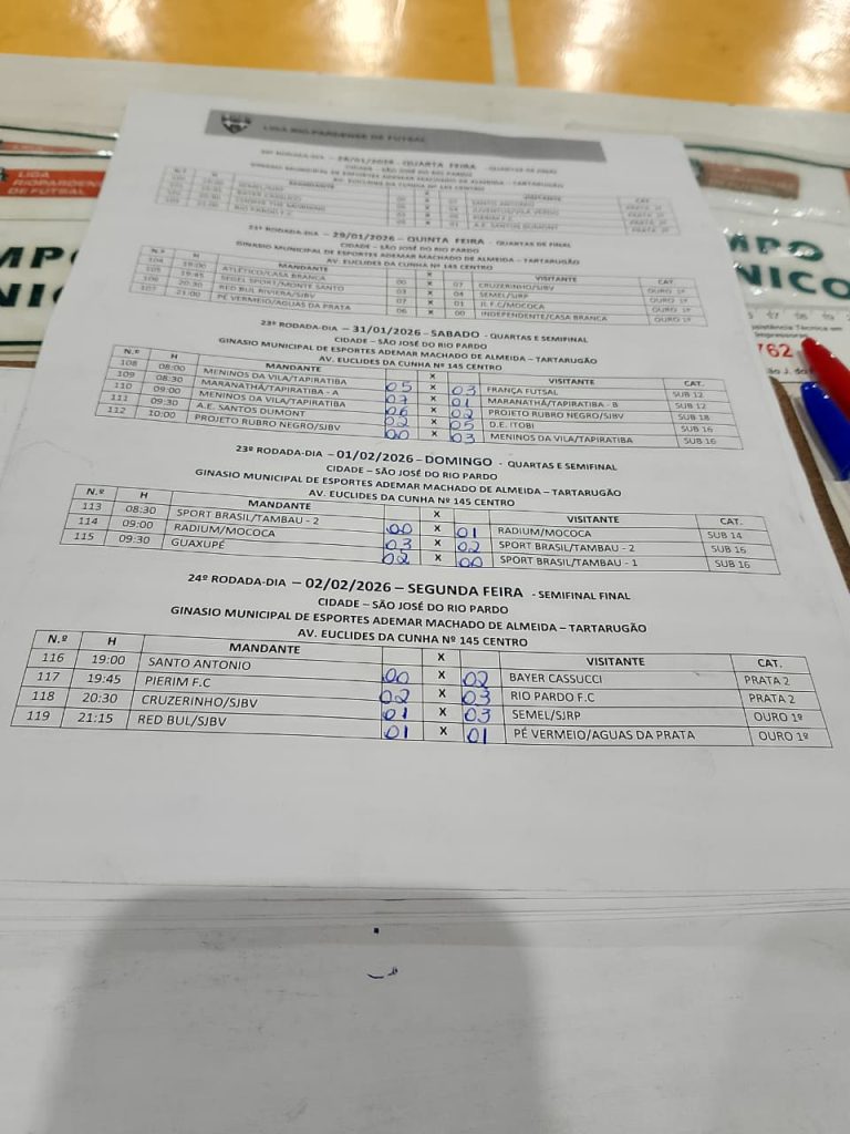 16º Rodada-Dia – 23/01/2026 – Sexta Feira