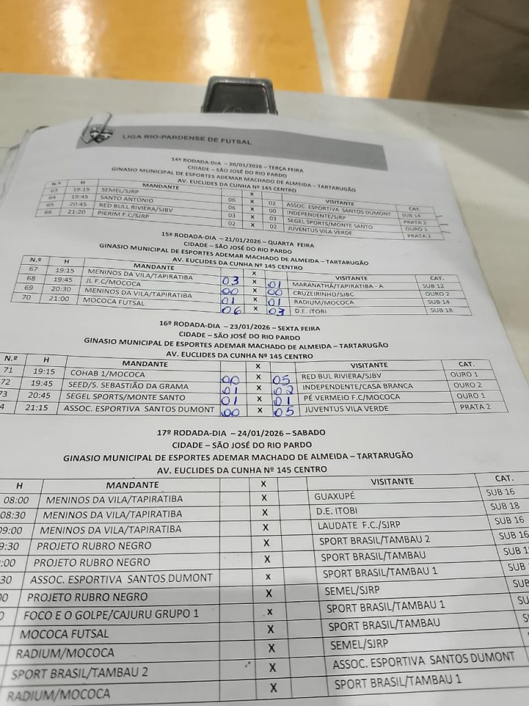 16º Rodada-Dia – 23/01/2026 – Sexta Feira