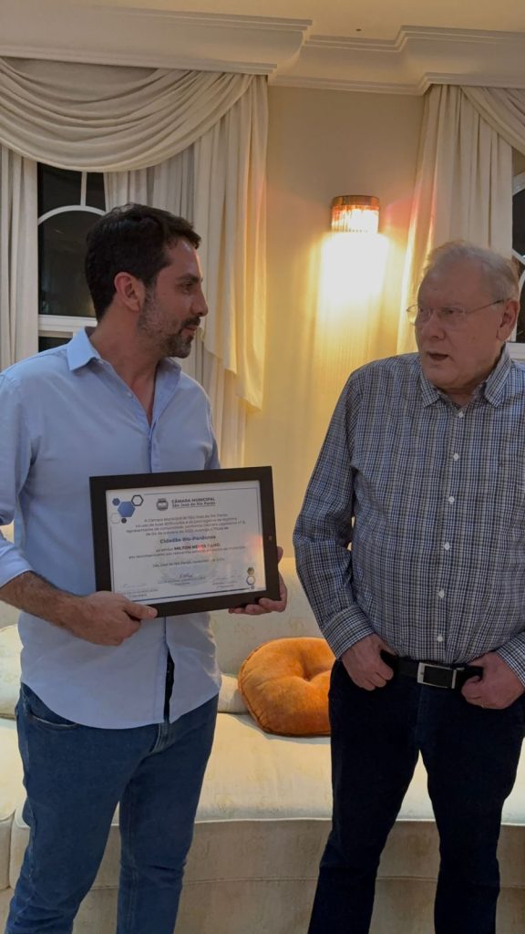 Entrega do título ocorreu dia 6 na residência dele, em Santana do Parnaíba, região da grande São Paulo