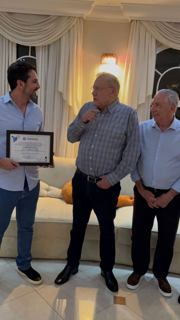 “Tive a honra de entregar mais um título de Cidadão Rio-Pardense a um dos maiores jornalistas da história do Brasil e mundialmente conhecido pela sua memória da história do futebol. Milton Neves recebeu seu 134º título de cidadão, desta vez da nossa querida cidade. No projeto de lei, de minha autoria, fiz questão de ressaltar as inúmeras vezes que o jornalista enalteceu o nome da nossa cidade e dos grandes craques rio-pardenses que abrilhantaram São José do Rio Pardo no meio do futebol”, destacou Henrique.